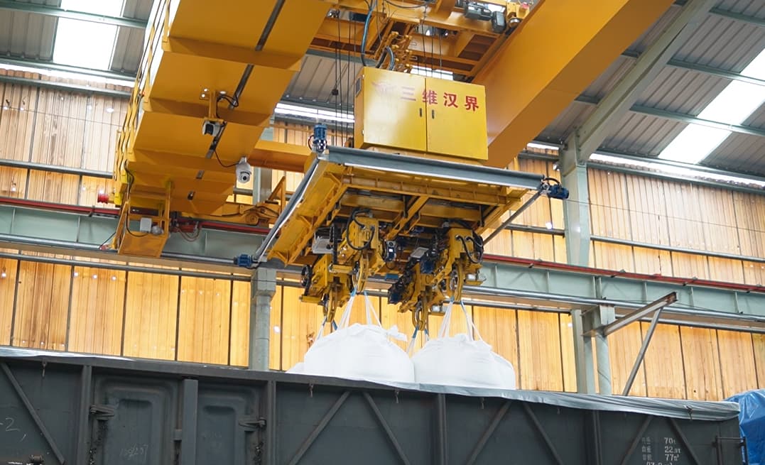 - 機械執(zhí)行:輸送機將噸袋送至抓取工位,吊裝系統(tǒng)按預設程序精準抓取并碼放至車廂指定位置,叉齒設計可保護噸袋并整形垛型。